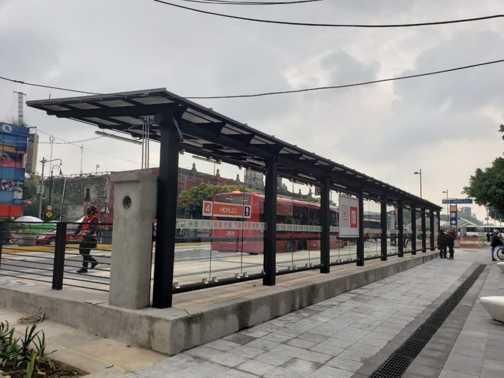 Descripción: Construcción del Parabús Terminal Hidalgo de la Líena 4 del METROIBÚS, inlcuye cimentación, estructura metálica, pintura, cristales, instalación eléctrica y señalética.